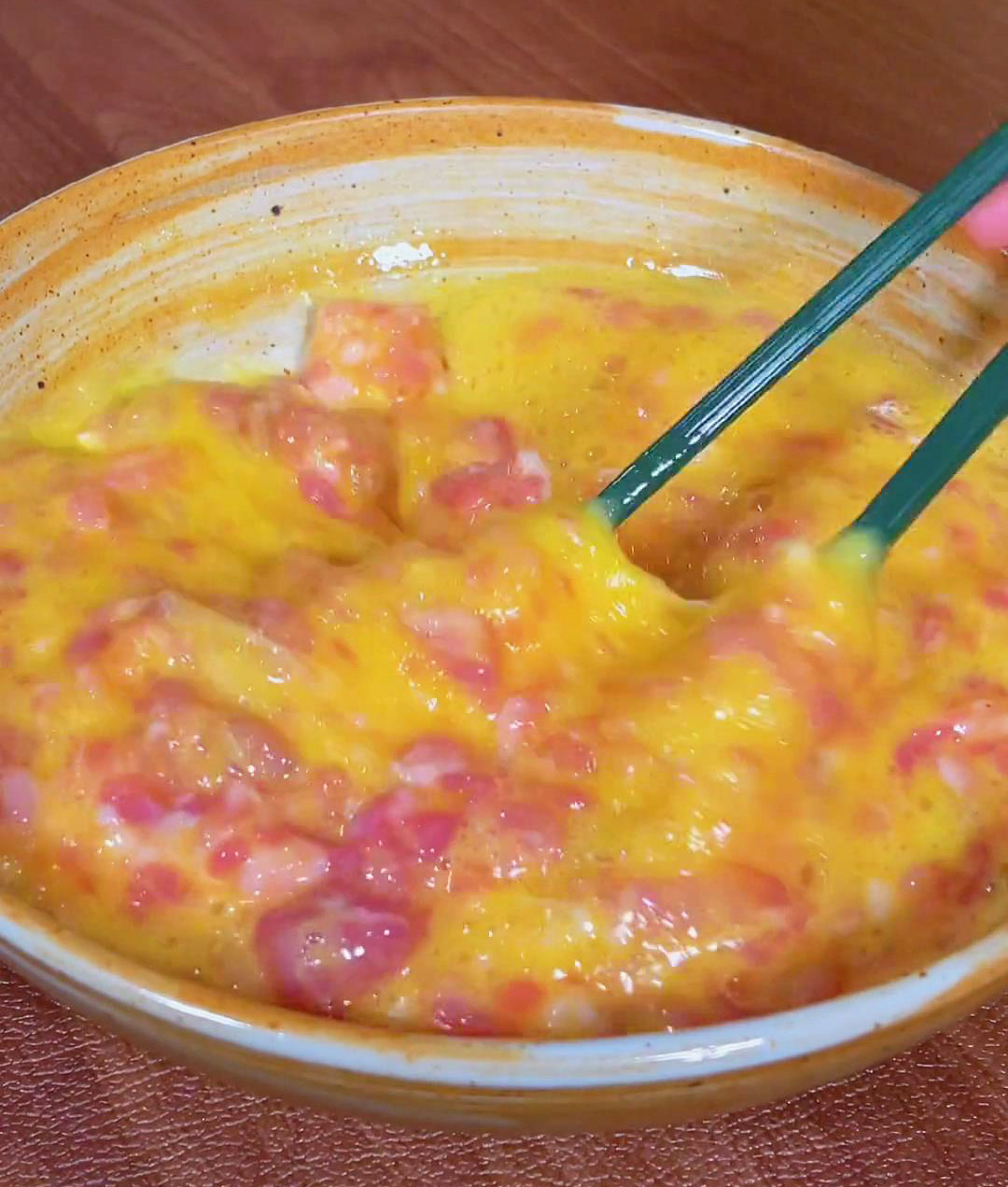 • Mix well with chopsticks until fully combined.