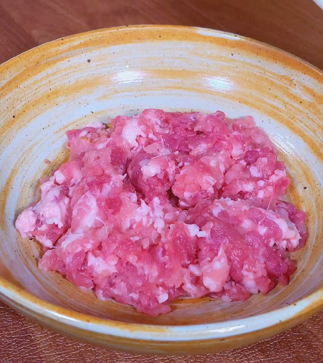 • Mince the meat with a knife. I prefer chopping the pork finely with a knife, especially when working with smaller amounts, as it's quick and efficient. Alternatively, you can use a blender if you prefer.